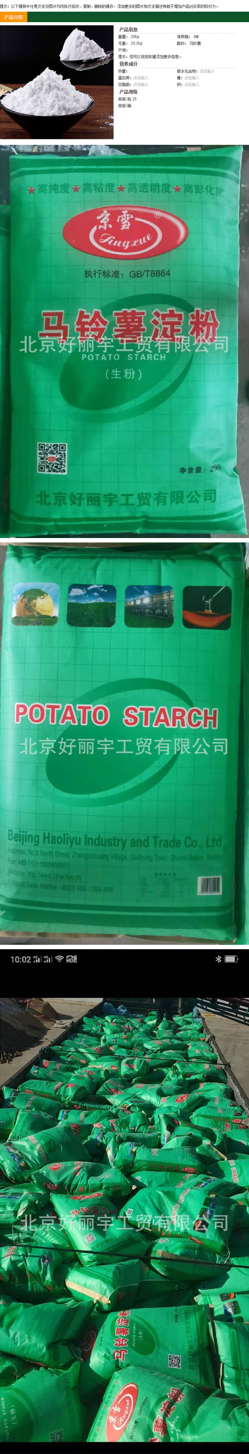 馬鈴薯淀粉廠家直銷 / 快速 / 放心